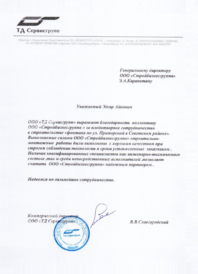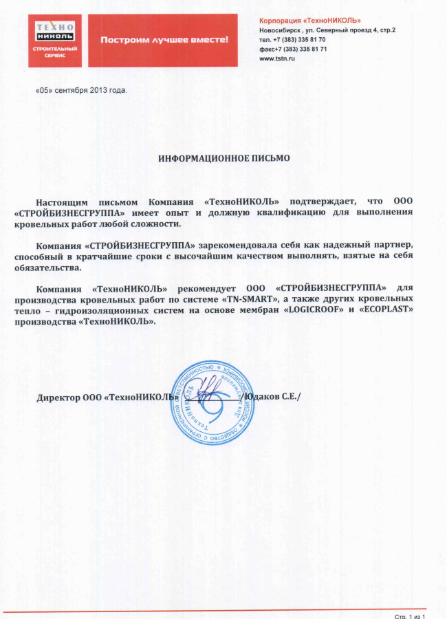 Чтобы вы могли убедиться в этом лично, запишитесь на экскурсию на построенные объекты. Вместе с этим мы готовы предоставить личные контакты заказчиков, чтобы вы могли напрямую получить отзыв о работе с ООО «СТРОЙБИЗНЕСГРУППА»